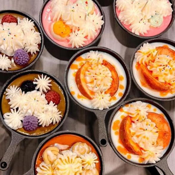 Indulge in the decadent aroma of our Dessert Soy Wax Candle featuring the rich blend of blackberry and chocolate brownie. Transport yourself to a luxurious and exclusive world of dessert flavors with every light of this premium candle. Served in a charming cast iron skillet, this candle is sure to elevate your senses and add a touch of elegance to your space.